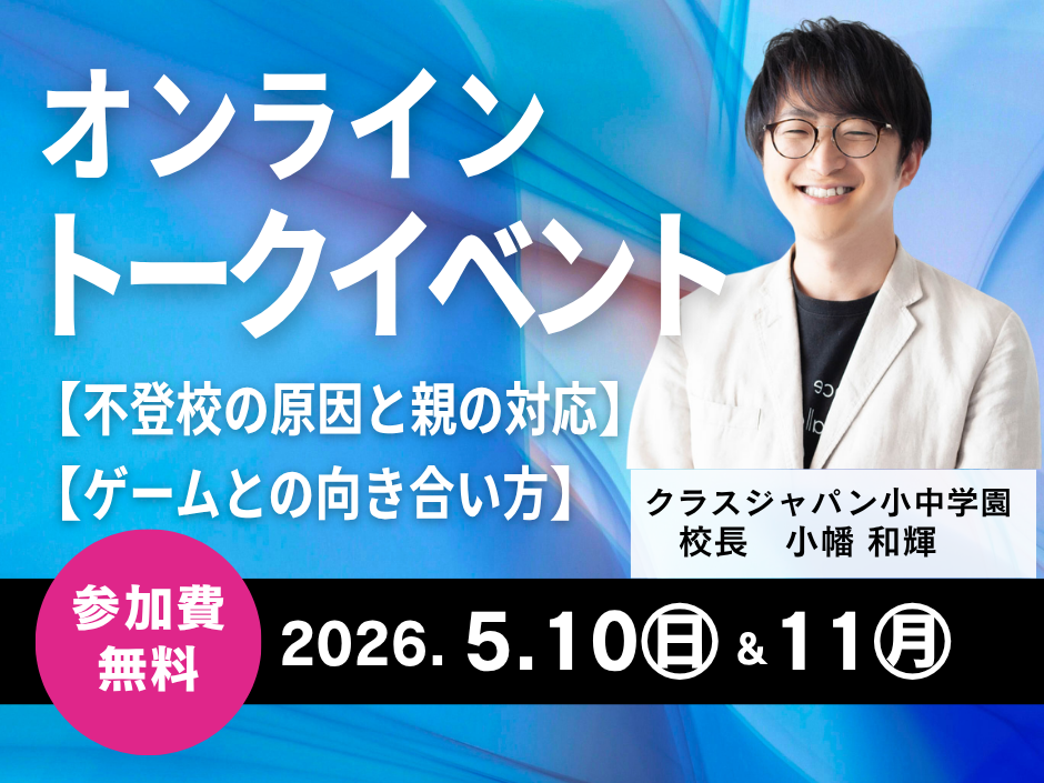 クラスジャパン小中学園校長の小幡和輝が登壇する、保護者の皆さまに向けたオンラインイベントを開催いたします。
